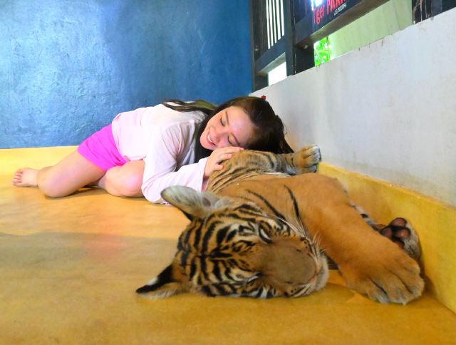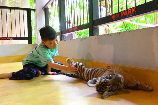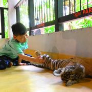 普吉老虎公园是一家位于普吉岛的动物园,以其独特的老虎体验而闻名。园区提供了多种与老虎互动的活动,包括与老虎拍照、喂食和观看老虎表演等。游客可以与老虎亲密接触,并了解他们的生活习性。