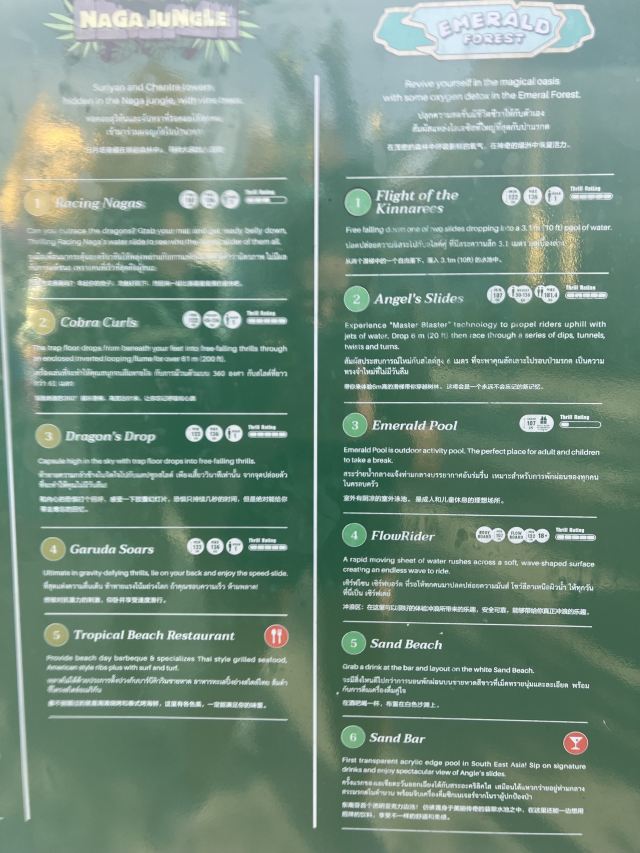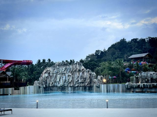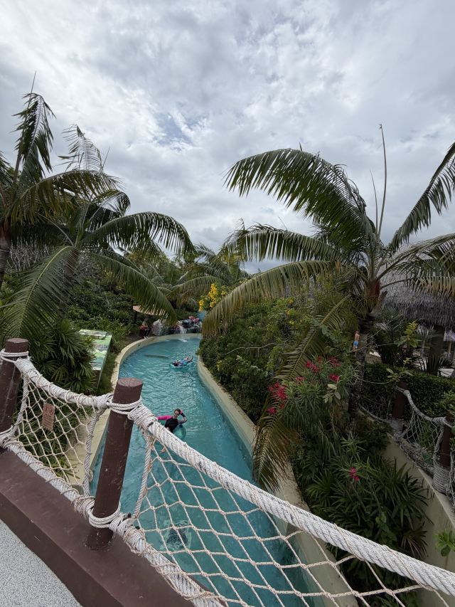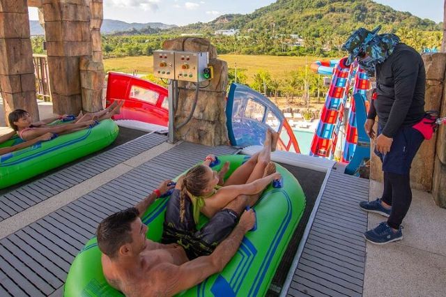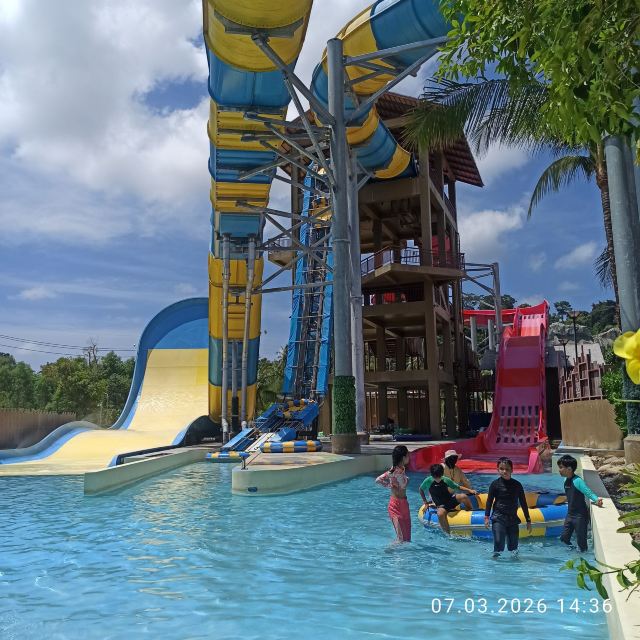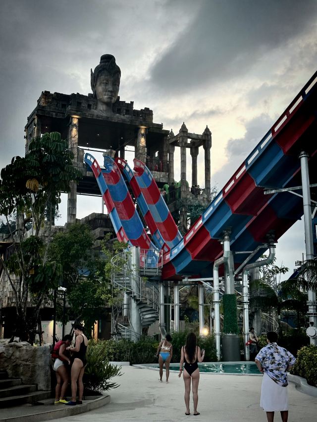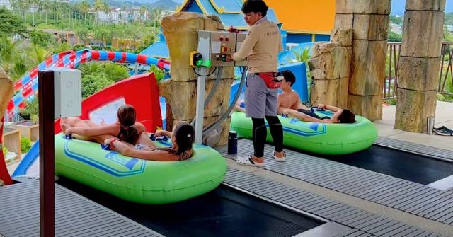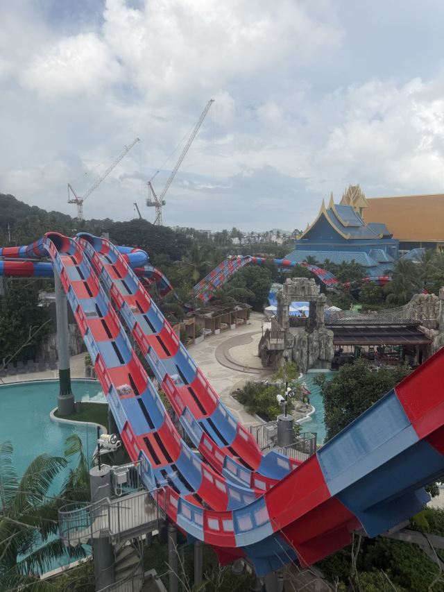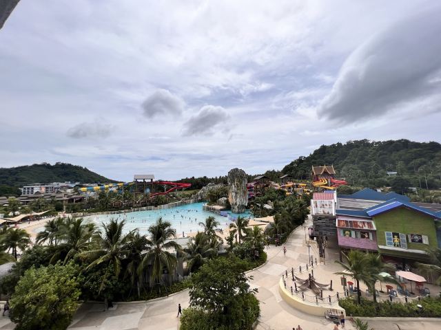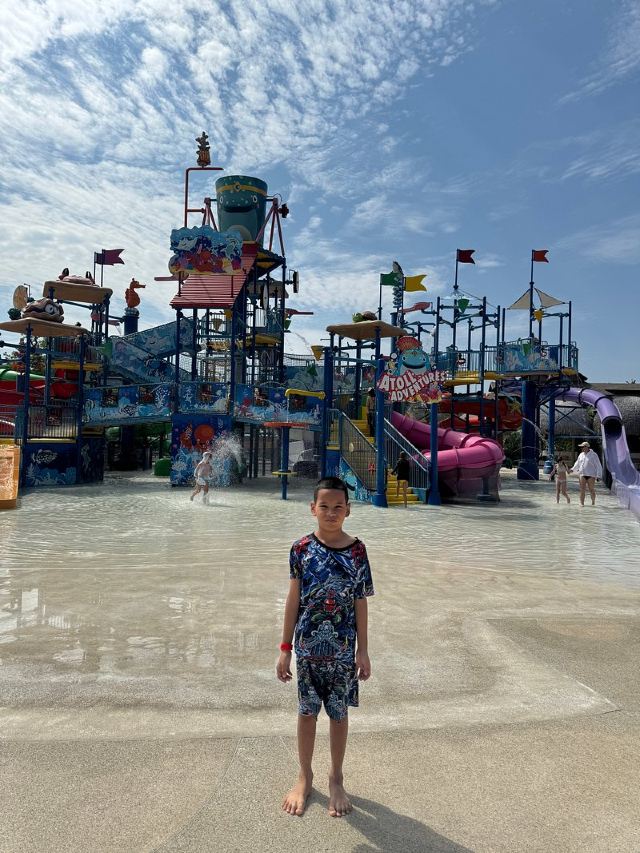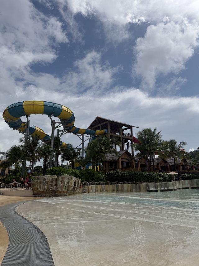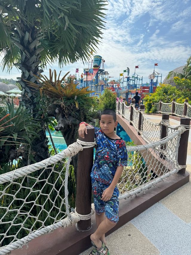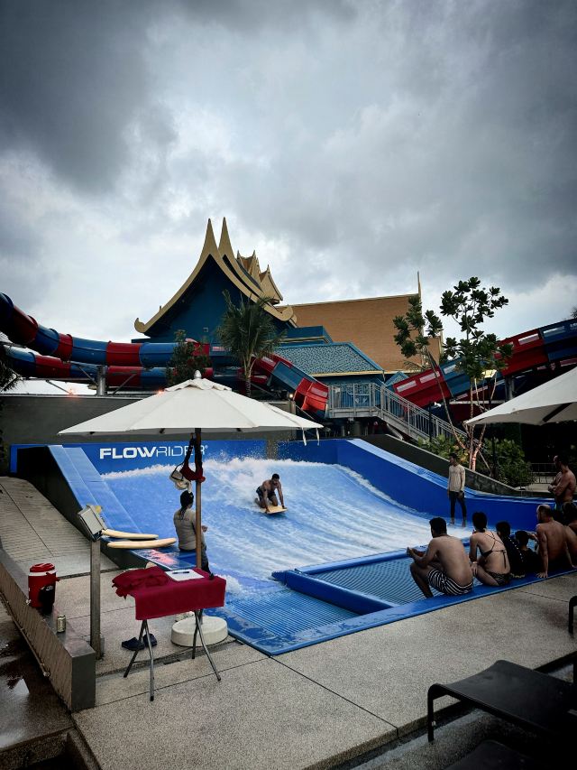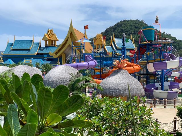 5分 超棒一家三口来玩,听说是最近半年开业的,来了之后几乎玩到不想走,是我认为目前普吉最好的亲子项目,俗称水上环球影城,哈哈。首先要检查包包,饮料之类的不能带,进去是买票,低于91厘米的孩子免费,两个大人花了3千泰铢,给了两个手环,其中一个是提供储物柜的,如果需要毛巾需要另外支付,然后就是游乐场五大区域了,各有特点,直接上图,可以反复玩,超级嗨皮,中午有点晒,下午4点以后进入最佳游玩时间,餐厅两边各有一个,一个简餐,一个正餐,价格稍贵,味道一般,所有景区的特点,有商店可以购买缺少的装备,建议直接穿拖鞋来,防晒一定要做,我们是最后离开乐园的,感觉一次玩不够,非常推荐,晚餐去距离不远的商场,完美