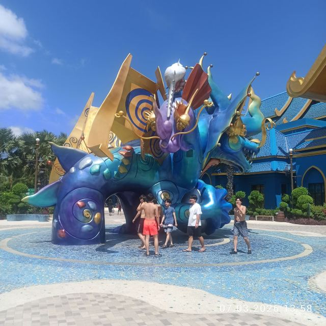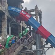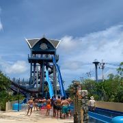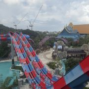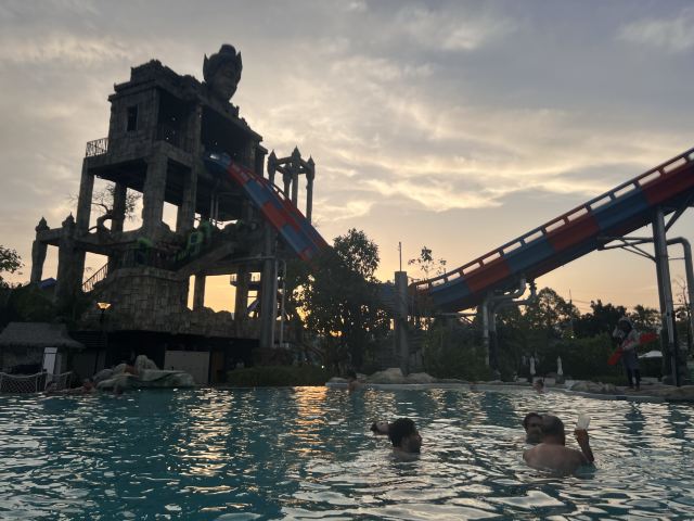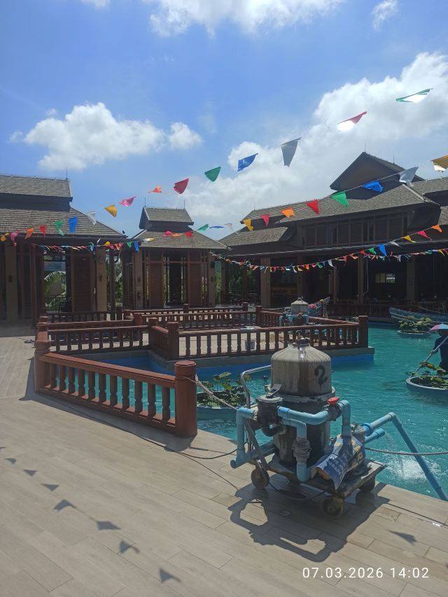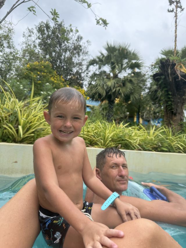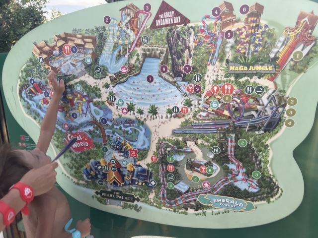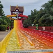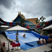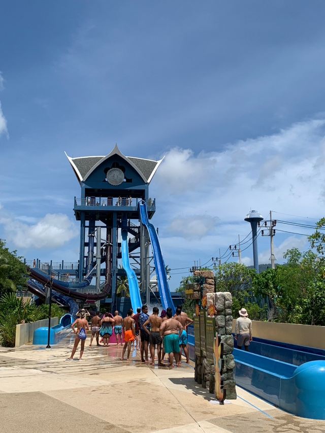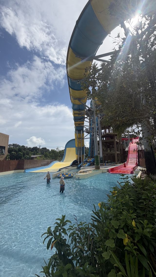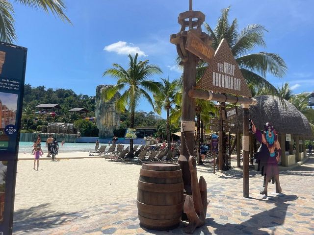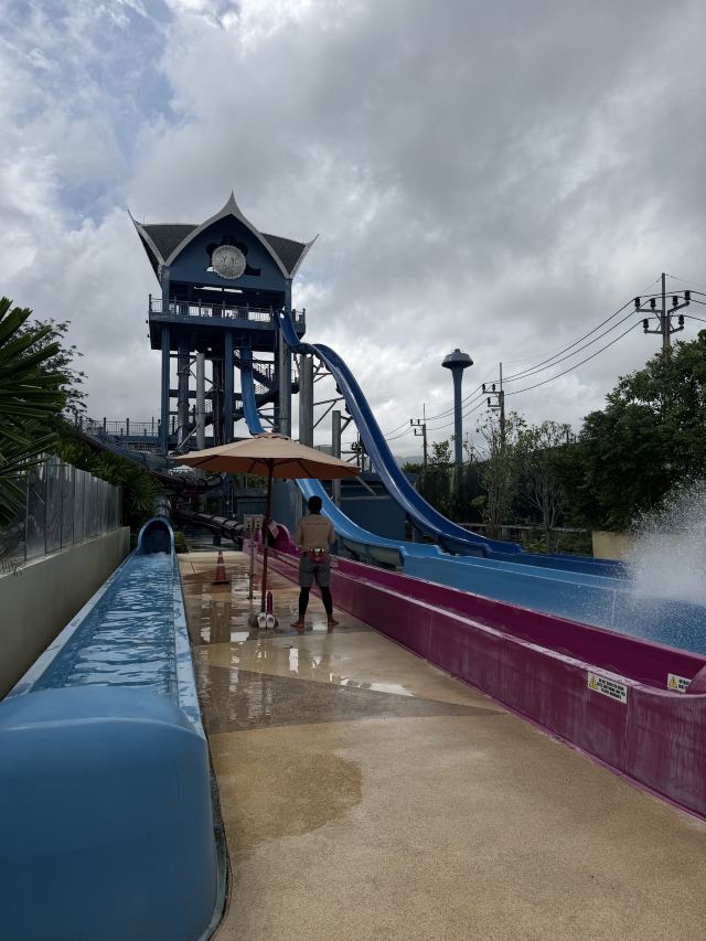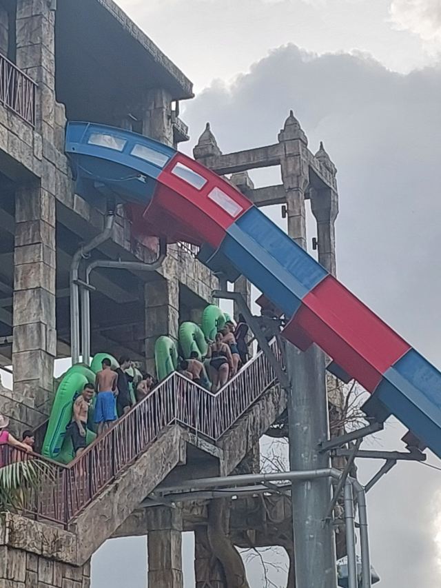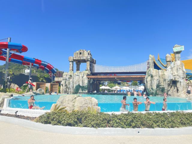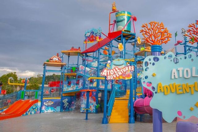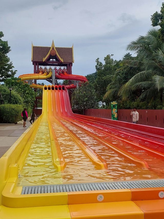 5分 超棒一家三口来玩,听说是最近半年开业的,来了之后几乎玩到不想走,是我认为目前普吉最好的亲子项目,俗称水上环球影城,哈哈。首先要检查包包,饮料之类的不能带,进去是买票,低于91厘米的孩子免费,两个大人花了3千泰铢,给了两个手环,其中一个是提供储物柜的,如果需要毛巾需要另外支付,然后就是游乐场五大区域了,各有特点,直接上图,可以反复玩,超级嗨皮,中午有点晒,下午4点以后进入最佳游玩时间,餐厅两边各有一个,一个简餐,一个正餐,价格稍贵,味道一般,所有景区的特点,有商店可以购买缺少的装备,建议直接穿拖鞋来,防晒一定要做,我们是最后离开乐园的,感觉一次玩不够,非常推荐,晚餐去距离不远的商场,完美