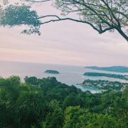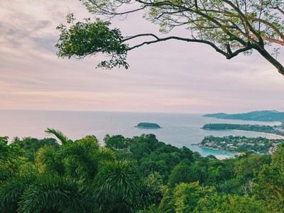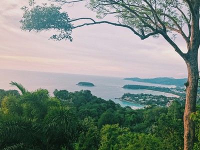 在卡伦海滩的山顶处,有一处观景台,天气晴好时可以将大、小卡塔、卡伦这三个海湾尽收眼底,看海水从沙滩边一直绵延到天际线,这里是普吉岛欣赏黄昏落日的著名地点之一——卡伦观景台。