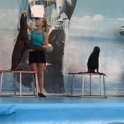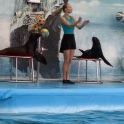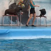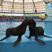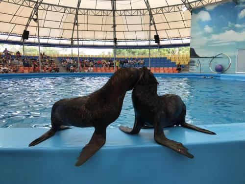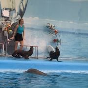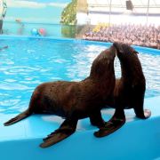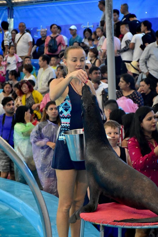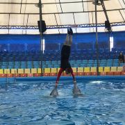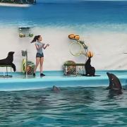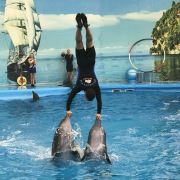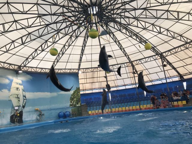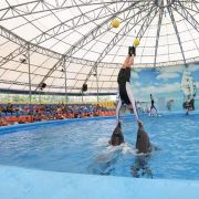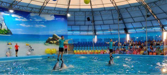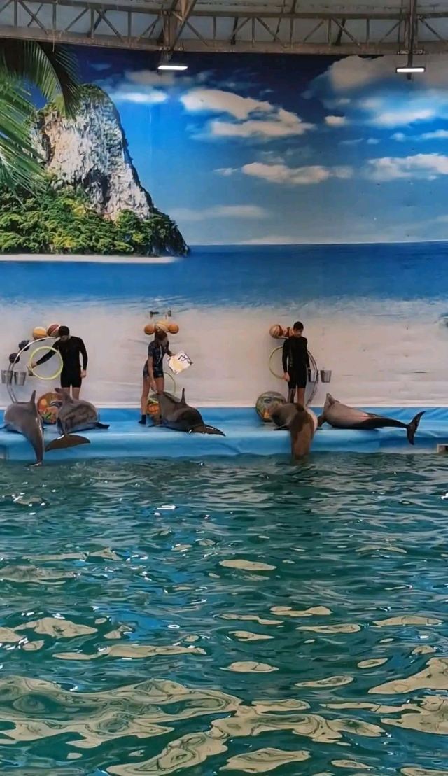 - 可爱的海豚灵活地转呼啦圈,优雅地在水中跳跃翻腾,又或是调皮地藏在水里不愿出来,给你带来一场精彩有趣的海豚表演秀。