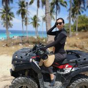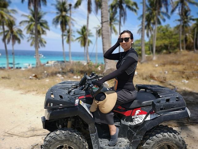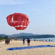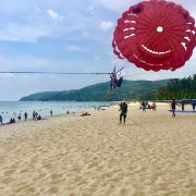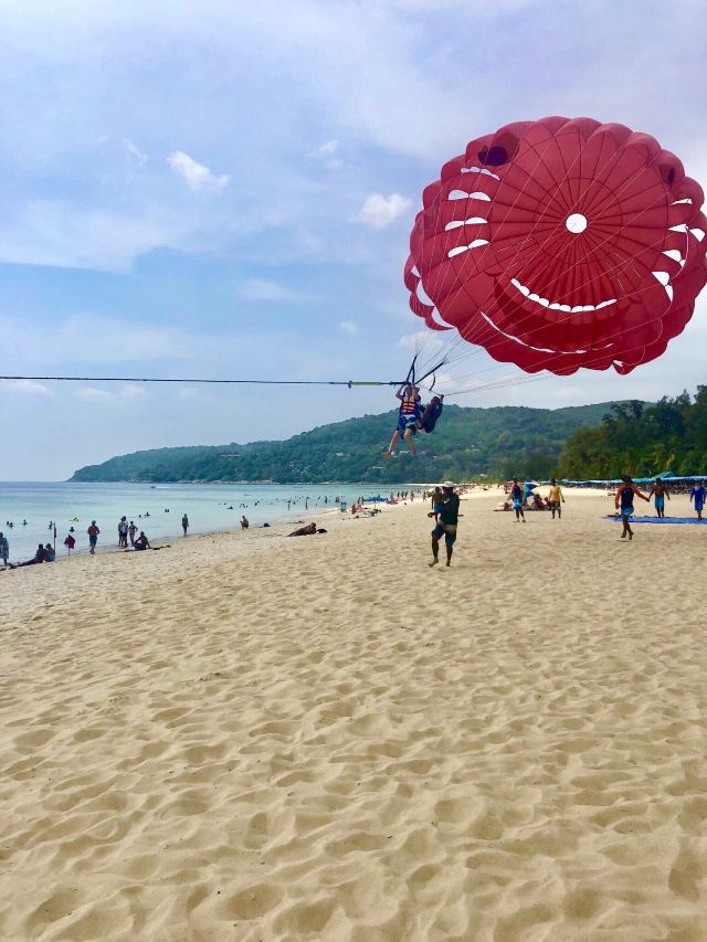 来卡伦海滩主要是玩水上运动,有水上摩托,和拖曳伞。都可以讲价的哦,不要骑很长时间,我们租了半小时,双人摩托,俩人轮番骑,每人15分钟胳膊就酸了,1600泰铢。拖曳伞1300