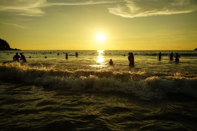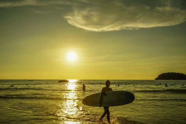 普吉岛第三大海滩,也是岛上最长的海滩之一,浪头较高,很适合冲浪运动。