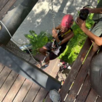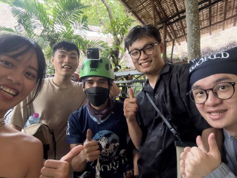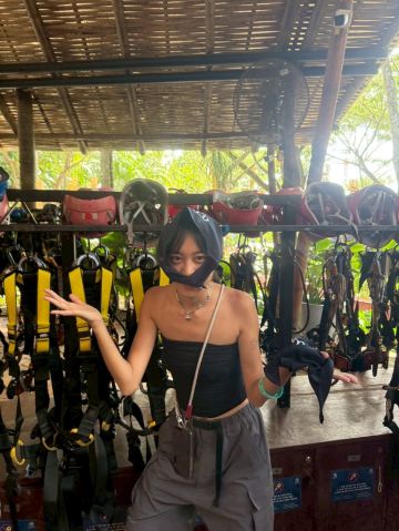 5分 超棒溜索分三种长度(10、18、32道),我们这次是买10道的想说有体验到就好了,最开始当然是要做好安全上的准备,他们有送一条丝巾可以绑在头上隔绝跟安全帽直接的接触(好贴心❤️),穿好装备后会被带到logo墙,拍照!整个流程都是被带着走的很像在赶鸭子哈哈,接着就是上高台啦~在登台的过程我的脚真的很抖看着周边的建物越来越渺小,我的惧高症(抖)所幸,本来担心的第一步下坠感他们又很贴心的会帮忙往上提缓冲,我害怕的那种感觉减缓很多~ 除了溜索外也有绳索下坠跟独木桥 ps那些惊声尖叫的人要小心啰 教练们最爱吓唬这种人了 因为我就是🙂 另外照片也是要额外付费购买的,不过都算拍的蛮好的,就败下去了 *四个人照片(总共52张)全买321$/人