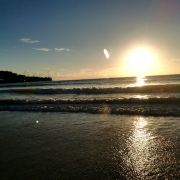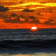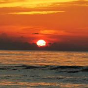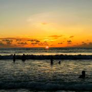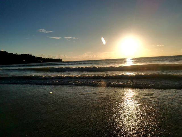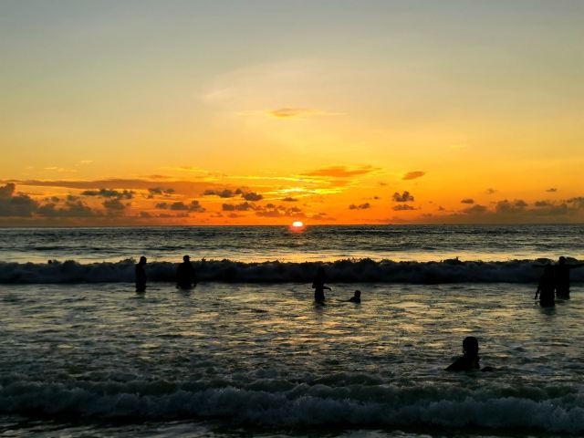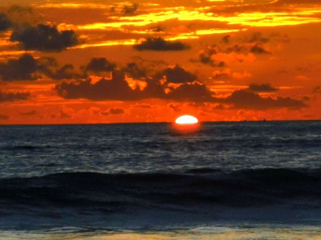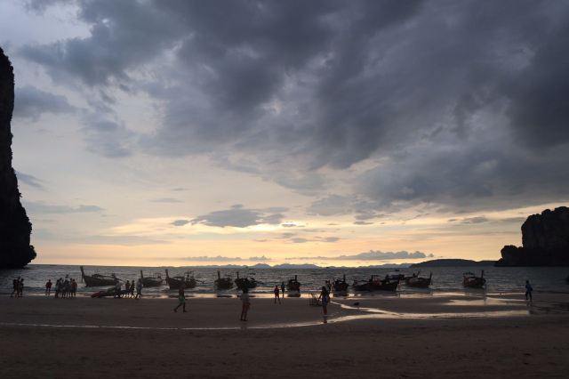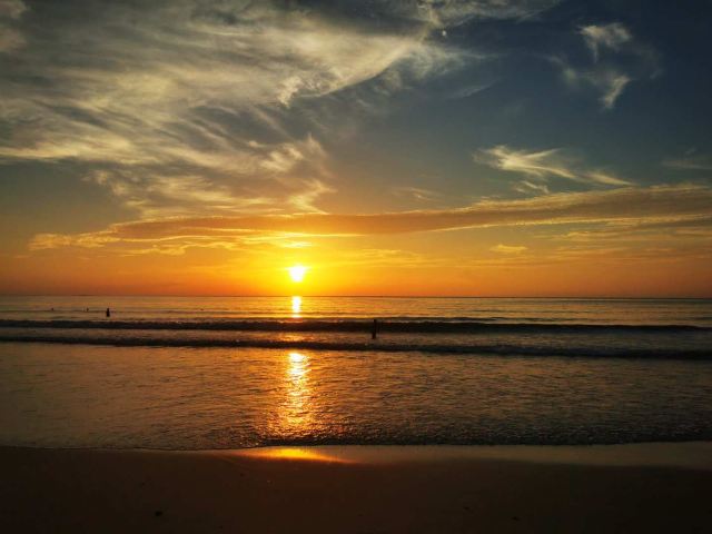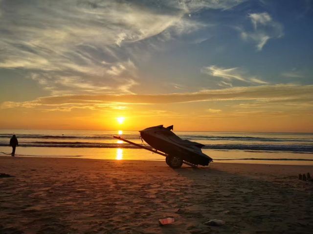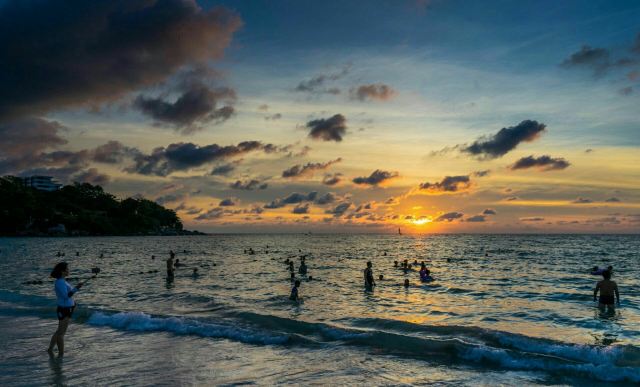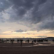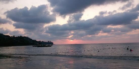 日落时分,除了可以欣赏到夕阳西下的美景,更能看到满载而归的渔船。海滩后方有一条ThLongpa街,上面有成排的旅舍和餐厅,不少喜欢长期旅行的游客经常会选择在那里常住下来,气氛还不错。