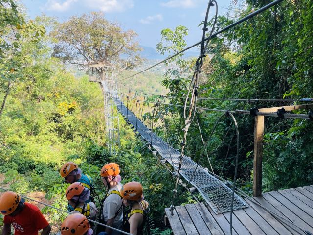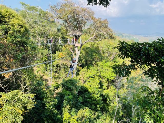 Skyline Adventure 普吉岛丛林飞跃位于拉崴(Rawai),是普吉岛一家较为新颖的丛林飞跃营地,自开办以来深受游客欢迎。在郁郁葱葱的雨林,像人猿泰山一样在林间恣意飞跃,呼吸着上方湿润的空气,架在雨林半空中,俯瞰脚下茂密丛林和眼前壮阔的大海。
