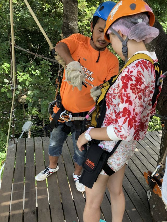 Skyline Adventure 普吉岛丛林飞跃各个平台与滑索由泰国认证工程师设计,具有多年设计高空滑索的资深经验,每一小队游客都将由经验丰富的教练带领。