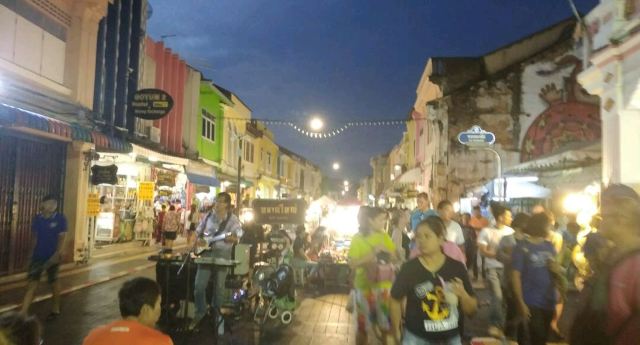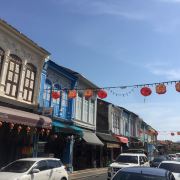 另外,迪布街上的连排二层楼房算是普吉镇保存得比较完好的华人风格建筑。住家门口挂着斗大的陈姓“颖川”字号,据说是普吉岛早期经营锡业的富商陈颖枝的落脚地,他娶的七位老婆各自拥有一栋房子,可以说迪布街是他的家族街。甲米路和沙敦路交叉口处有一幢葡萄牙风格的老房子,过去是葡萄牙商务办事处,现在是老城区保存完整的旧建筑。