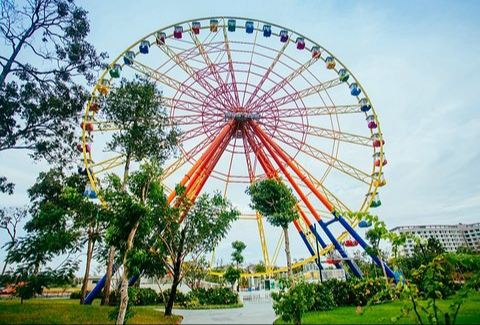 游乐场内有丰富的水陆游戏设施,室外游乐区有云霄飞车、巨型摩天轮、UFO飞盘、高空旋转、翻天飞鹰、碰碰车等各种精彩刺激的游戏,还有能同时容纳3000人观看表演的海豚表演馆。而室内游乐区则有5D电影院以及各种的大型电玩。