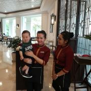 5分 超棒酒店挺好的,这次带着老婆孩子三人自由行,落地签,下机后出海关时需填表格,当地海关人员说越南语没听懂,需要照片,之前有听说也准备了不同尺寸的,但是不行,好像意思是30人民币1人,我给了100元意思不用找了,顺利通过。酒店专车接,是之前与携程确定好的,当时已是凌晨两点了,酒店很偏距离机场约50多分钟,距离富国岛夜市40分钟左右。酒店白人多,亚洲人多数是韩国人多。更适合带孩子去,也都很多人带孩子,酒店所有员工都很热情,也常和我儿子玩。早餐非常丰盛,沙滩休息椅上多数是白人晒太阳,不过沙滩上会有小石子需要注意。告诉个秘密,走沙滩过水上娱乐设备购票的小屋,旁边翻过小土坡就是隔壁酒店,可以带房卡去隔壁酒店的酒店私用水上乐园玩,之前我去探路,与看门人员沟通说可以持珍珠酒店房卡免费进入,后带家人走酒店正门要求派车送我们过去,说明意思后,酒店工作人员说持珍珠酒店房卡不能进入,最后我们还是免费进入了,可能珍珠酒店员工也不清楚吧。还有去夜市有免费班车,记得在夜市超市里买香烟,饮料和夜宵,因为珍珠酒店附近没有超市,否则所有吃喝都需要在酒店消费,酒店不卖香烟。个人感觉珍珠乐园没什么好去的,要是去记得带上泳衣,里面有水上游乐场,更建议去隔壁酒店水上游乐场免费玩。珍珠野生动物园很值得去玩