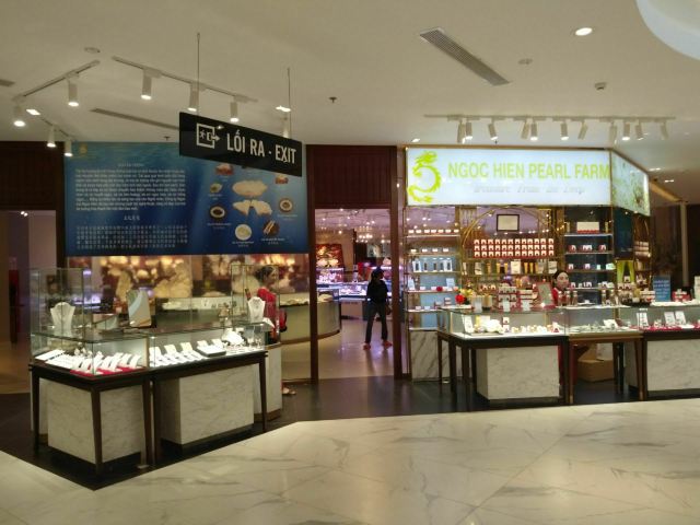 这里是越南规模较大的珍珠展示区,有着巨大的蓝色顶棚,这里展示了各种珍珠饰品,还有现场开蚌的展台,有时工作人员会向你介绍珍珠的不同种类。