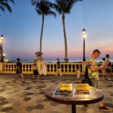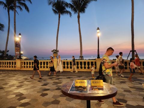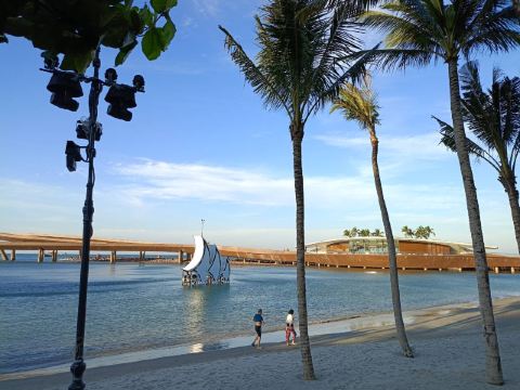 岛东侧的白沙滩平缓延伸,沙粒间混杂着贝壳碎片与风化的珊瑚残骸,椰树林后方设有竹制观鸟台,可观察鹭鸟掠过潟湖捕食的剪影。西岸岩礁区保留着渔村遗迹,朽坏的木桩与藤壶覆盖的锚链暗示着昔日的海上聚落,改建的高脚屋现提供炭烤海鲜与鱼露调味的在地菜肴。