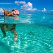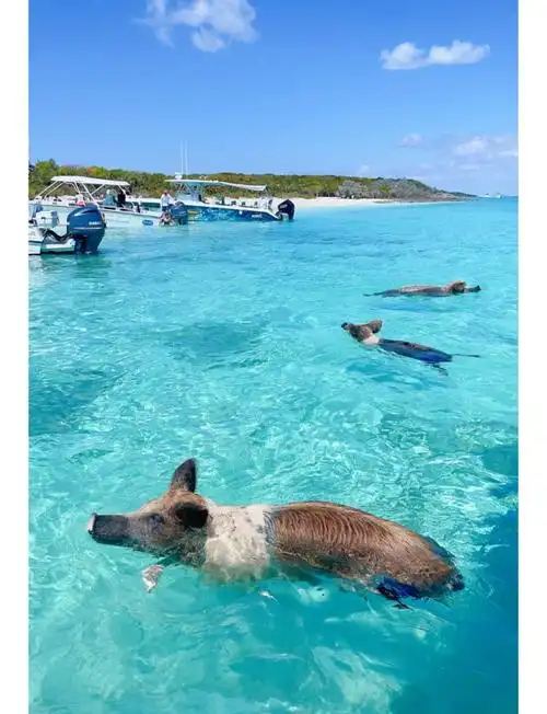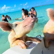 该景点位于巴哈马东南方的一个小礁,由于汇集了幸福的猪群在此嬉水游玩而被命名为“猪岛”。除了当地居民的喂养,它们也会激动地跳进水中,迎接前来的游船和游客,等待他们带来的美味,这里是名副其实的“猪的天堂”。