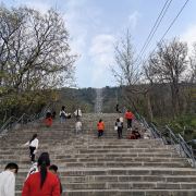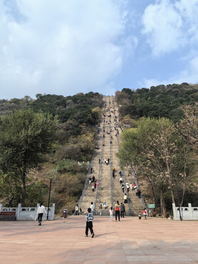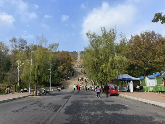 公园内道路纵横,奇木成行,花坛锦簇,草坪如毯,山前有成片的松林、柏林、槐林,茂密旺盛,生机盎然,登山石阶666级,直冲山顶,雄伟壮观。