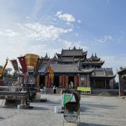 阁里敬奉着三清祖师,庙宇外塑着高达丈二的观音。道教佛教有机融合,你拜佛磕头,许愿,是不是有了双保险?