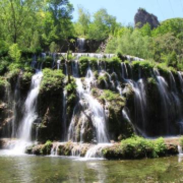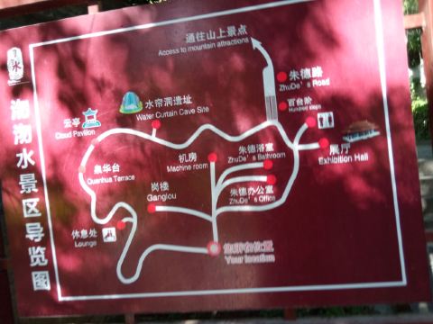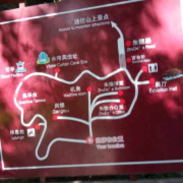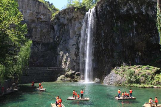 百丈瀑布是景区内的一条瀑布,落差很高,而且流水量大,洁白湍急的水流冲向山底的潭水,特别壮观。在百丈瀑布的下方是一处面积很大的陶然湖,湖水碧绿,景色非常优美,可以在这里观光拍摄。水帘洞也是一处瀑布,和百丈瀑布相比水流较小,但洞内开放了展览,展示了远古时期人民的居住环境和使用的工具,十分特别,可以留意观看。云泉则是一处很大的泉水,泉水可以上涌喷出水面,形成类似趵突泉的涌柱,非常漂亮。一线天位于山顶,是一处地貌奇观,可以步行在两座崖壁之间的小路观看,登上一线天后,还可以在背后乘坐山顶的大石滑梯返回到一线天下方,滑梯长约800米,票价20元。
