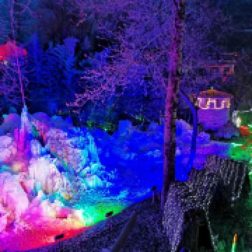 除了春、夏、秋三季前来观赏山水景色外,冬季也是游玩景区的好时机。此时景区内的河流、瀑布都会结冰,形成壮观的冰瀑奇观,十分空灵奇幻,是摄影的好去处。冬季夜晚时,景区内还会举办冰灯节,届时可以过来赏灯观冰,非常有趣。