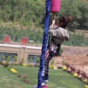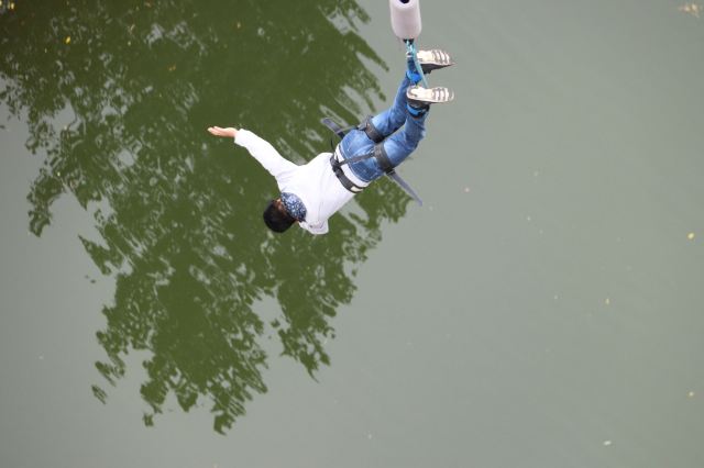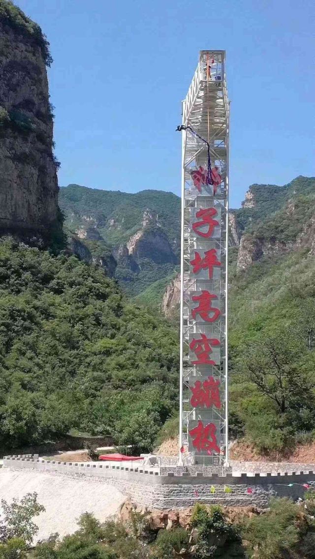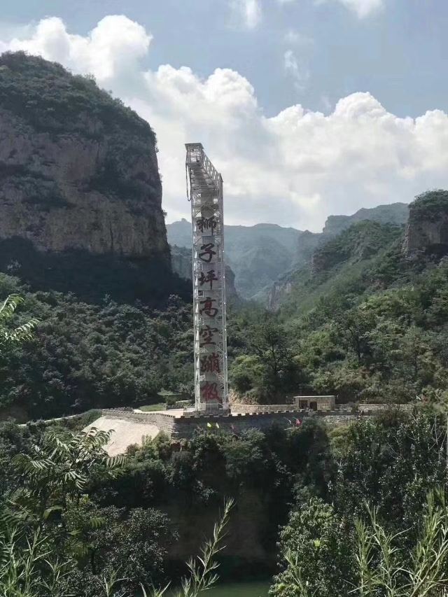 狮子坪蹦极位于河北省平山县西南边,蹦极高70米,当你纵身一跳,眼前是太行山脉的峰峦叠嶂,脚下是蜿蜒、秀美的险溢河。高空弹跳不仅可以完全感受自由落体的快感,更可享受反弹失重的乐趣。除了蹦极,这里还设有险溢河漂流娱乐项目,是户外挑战项目爱好者的好去处。