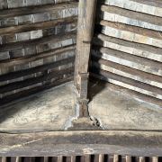 天台庵坐北朝南,殿宇规模不大,面阔、进深各三间,方形平面规整地立于石砌平台上。踏入其中,质朴的木质门槛、门框和门头,毫无冗余装饰,岁月的沧桑尽显。明间开间较大,比例协调,次间宽度仅及明间一半,营造出富有韵律的空间感。