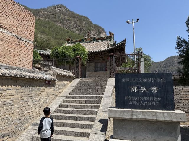 佛头寺因背靠佛爷垴而得名,原有两进院,现仅存宋代佛殿一座,坐北朝南,面阔三间,进深四间,平面近方形,单檐歇山顶,筒板瓦屋面,琉璃脊饰。是一处建筑形制较为独特的宋代建筑。