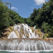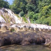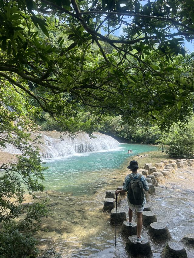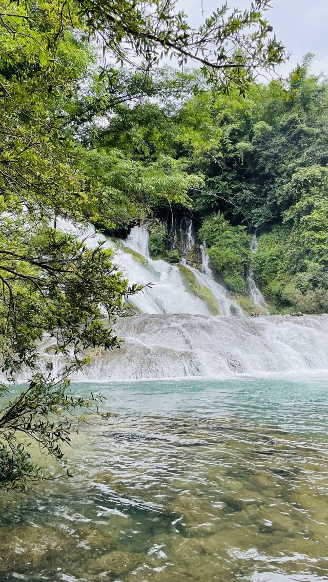 5分 超棒【景色】瀑布娟秀壮观,潭水清澈呈蓝天糖果色,非常美丽,适合情侣游玩,心情舒畅
