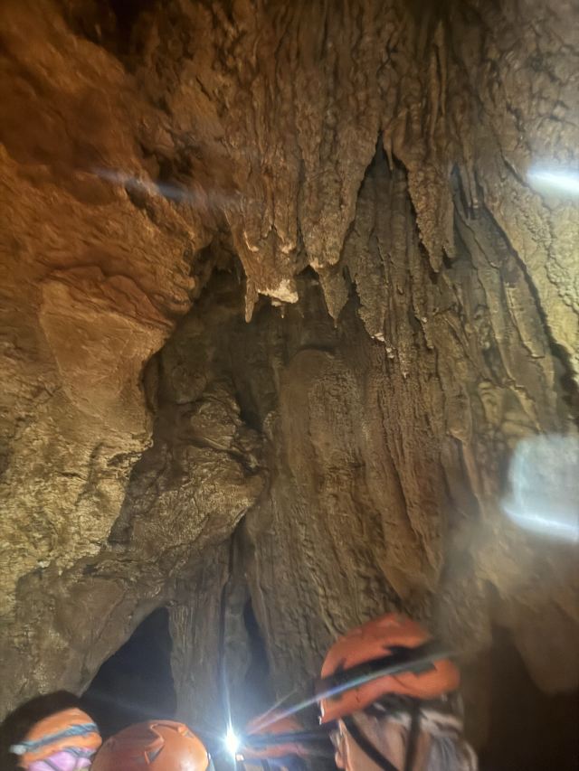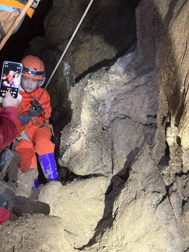 一进洞,就像打开了另一个世界的大门。洞里的石头千奇百怪,有的像蘑菇,有的像倒挂的冰凌,小朋友兴奋得一直叽叽喳喳,眼睛瞪得大大的,充满了好奇。带队的王教练也特别好,一路上耐心地给我们讲解洞里的知识,随行的工作人员还提醒我们小心路滑,照顾小朋友。