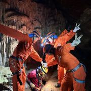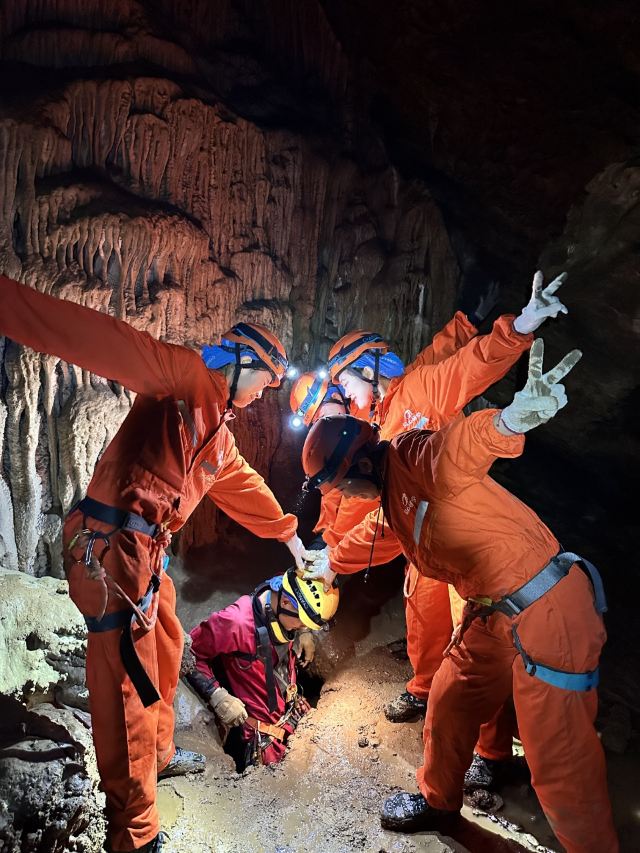 星洞距离中国天眼景区5分钟左右的路程,于天眼形成观天探地路线。更深入了解贵州喀斯特地貌形成历史。洞穴探险不同于常规的观光旅游,因为我们将会进入原生态的自然溶洞。所以在开始探索之前我们需要在大本营完成必须的行前培训。在行前培训中我们将学会如何穿戴个人安全装备,包括头盔,头灯,探洞服,安全带等。并且领队会介绍我们此行的教练团队,讲解必要的安全知识。所以行前培训非常重要,认真参加行前培训可以让我们的探险之旅更加得心应手。完成行前培训以后,我们就正式开始了探险的旅程,从大本营出发,需要徒步大约10-20分钟即可到达洞口。这一段路是我们探险行程的一个热身,大家可以通过一小段徒