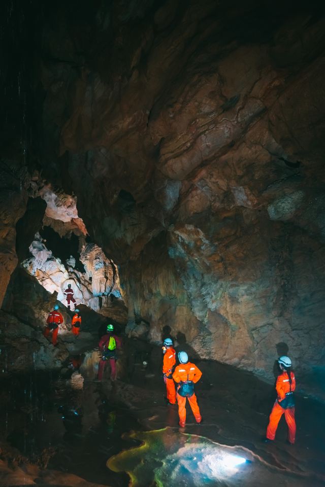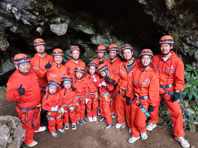 步充分激活身体,为后面洞穴中的穿行做足准备。星洞独特的构造让他拥有众多的探险体验,我们在洞穴内将使用自主研发的洞穴不间断保护系统,在黑暗湿滑的洞穴里也不会发生迷路或者滑坠的风险。洞穴里的海洋生物化石,石柱,石笋等各种各样各样的洞穴沉积物是天然的地质课堂,教练将会在真实环境下带来一堂生动的地质课堂。当然还有更多的体验项目需要保密,如果提前知道了一切就没用了探索未知的乐趣。完成黑暗洞道的穿行后,我们将会从洞口乘坐溜索在一个宛若世外秋源的天坑返程。