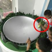 参观完大约两点半出体验馆,寄存包包和所有电子产品后,进入安检正式前往参观射电望远镜,提醒一下的是安检还是很严格,安检后排队统一坐车约十多二十分钟到达FAST观景台的游客中转中心,这里会再进行一次安检;然后就登上700多级楼梯上观景平台,沿途有十二星座的圆柱形铸铁雕塑和简介,当然,不愿爬楼梯可选择试运营的接驳车登上平台附近,我们找虐30几度高温爬梯上[捂脸],登上景观台能清楚看到整个全景,大部分网上找到的图片都在这里拍摄的。