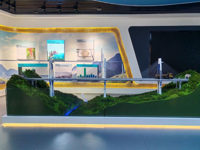 平塘特大桥又名“天空之桥”,服务区主体二楼的桥梁科普馆,讲述了中国桥梁的发展史以及桥梁的科普知识。同时把国内非常知名的大桥做了介绍。后面的行程我们还安排了坝陵河大桥跟北盘江大桥。