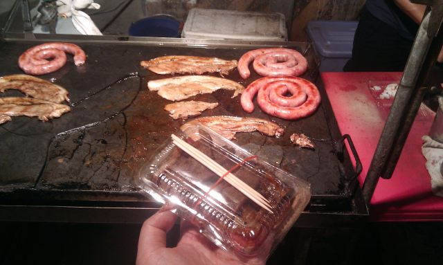 垦丁大街夜市满目都是各种美食:酱烤鱿鱼50元,牧场炸鲜奶20元,生猪石板烤肉150元……烤大虾、烤生蚝、炸鸡排、新鲜水果,美味卤味、400-500台币足够让你吃到爽吃到撑。