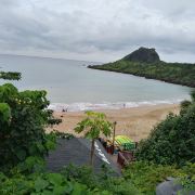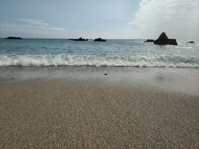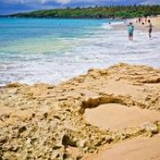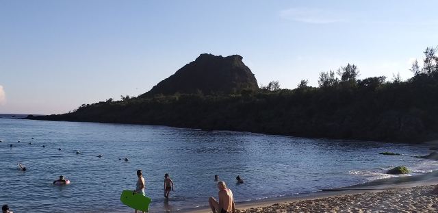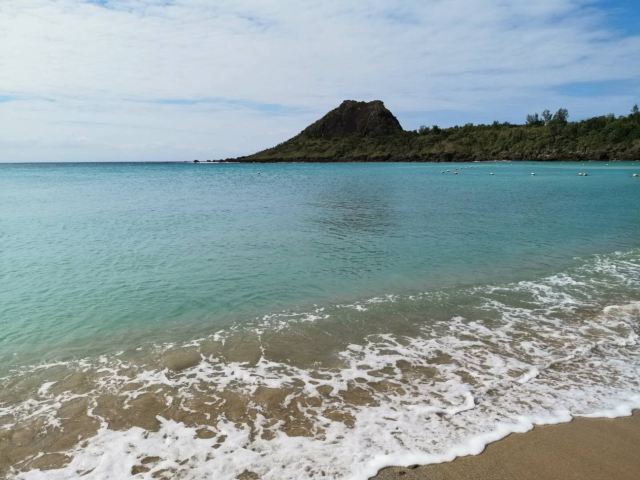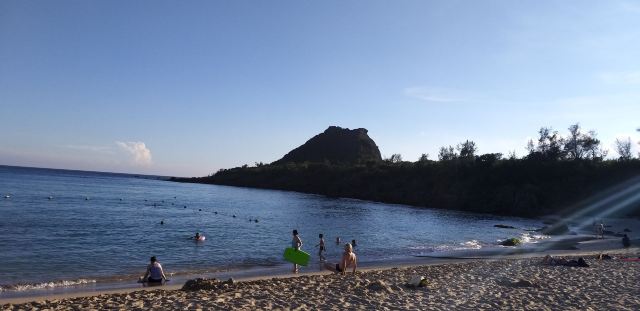 这里海湾的沙滩是由贝壳沙组成的,阳光下会看到像似黄金般的光茫,美不胜收。夜晚的小湾看来很浪漫带有一点的异域风情,会有不少情侣在这欣赏夜景。