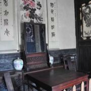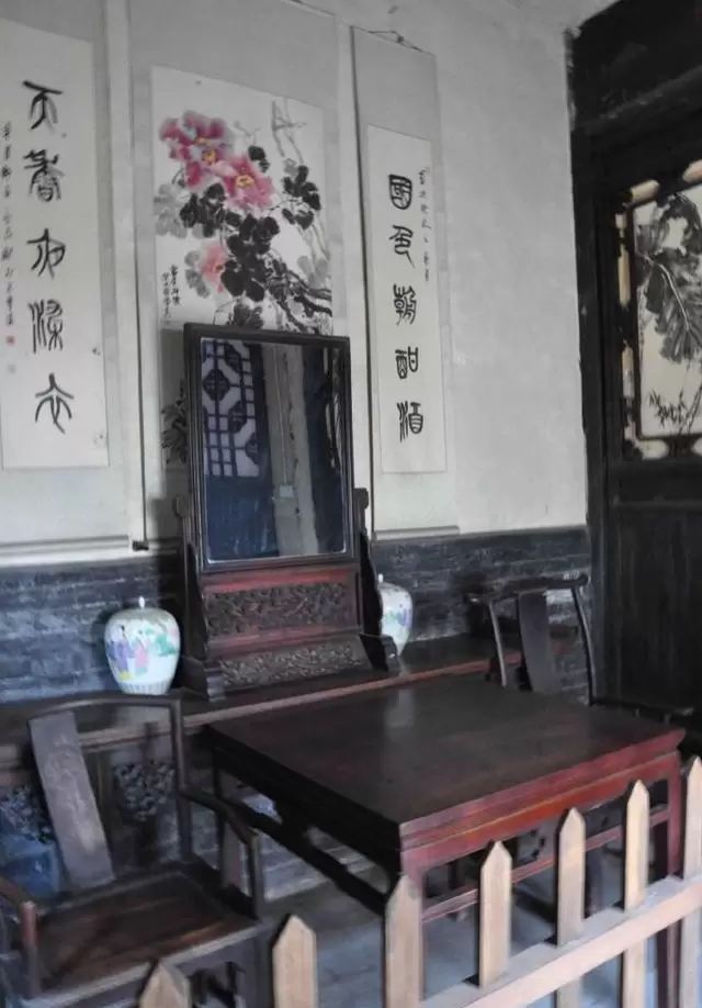 故居南厅以前是宴请宾客的场所,现在用版面形式讲述了他的生平事迹。正房是整座院落中级别较高的房子,整个屋子里保存价值较高的是墙上的壁画,距今有180多年历史。