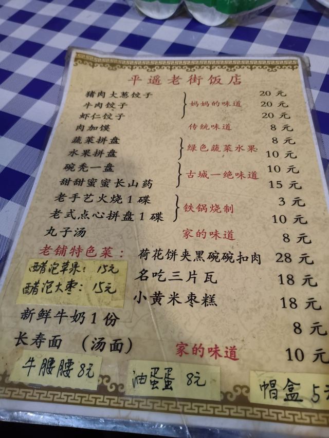 5分 超棒平遥古城免费开放,但是古城内的景点要单买门票130元,如果不进景点,则主要逛明清一条街和东西大街。平遥古城内南大街又称明清街,自古以来就是平遥县最繁华的商业中心,街道两侧的店铺都是具有明清风格的建筑。2009年,平遥古城的南大街入选了首批“中国历史文化名街”。
