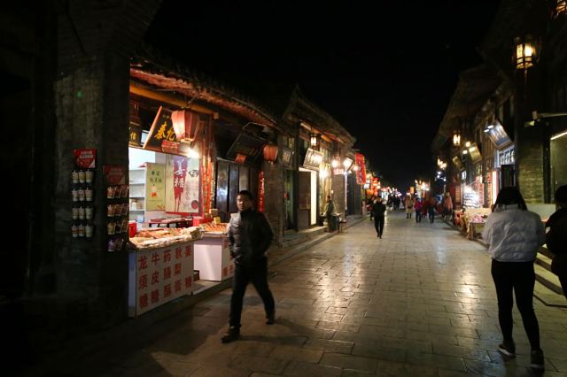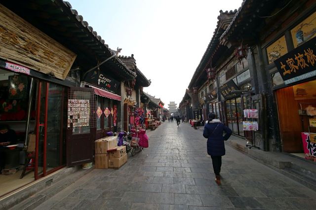 这条不长的古街上还完整地保存着明清时期的店铺遗迹,紧密连缀着包括票号、钱庄、当铺、药铺、肉铺、绸缎庄等当时各种行当的店铺,而现今游客可以在这里买到平遥土特产,也有特色小吃店和纪念品店。