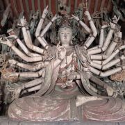 游览此地,处处都会令你叹为观止。天王殿中高达三米的“四大金刚”像,高大威猛;释迦殿内,四壁上采取连环壁塑的形式,表现了佛祖释迦牟尼的一生;千佛殿内的观音像,面相恬静妩媚,姿态舒畅自然。观音旁的韦陀像,双重性格的深入刻画,夸张变形的身躯表现了力度,面部表情高度传神;菩萨殿中的主像——千手千眼观音,手势千变万化,塑造得十分纤巧而富弹性。