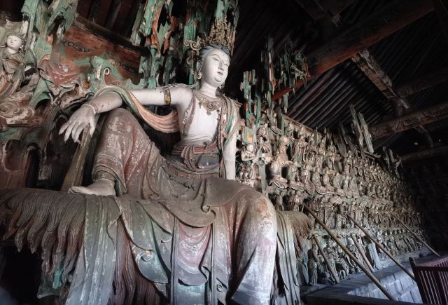 双林寺北齐始建,宋代重修,以悬塑闻名,是东方塑像的瑰宝。立体画卷的视觉冲击,自在观音观自在,让你游走其中顿觉大饱眼福,此寺庙也是以欣赏古建和独特的悬塑为主