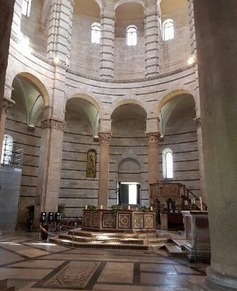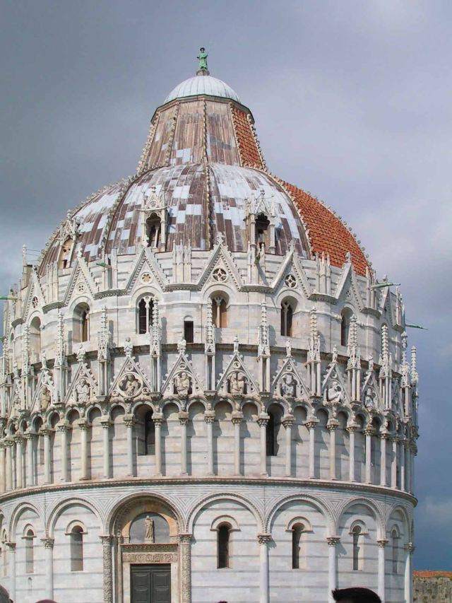 圣若望洗礼堂是罗马式和哥德式混台风格,拥有一个直径 35公尺的巨大圆顶,和四座雕刻精緻的大门,但看外表就给人以独特的印象。内部则有非常好的採光和音响效果,也很值得进去瞧瞧。