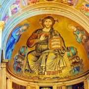 这种教堂圆顶之下的耶稣圣像绘画,在 北欧 ,在 中欧 ,在 法国 ,是看不到的,浓郁的拜占庭风格。