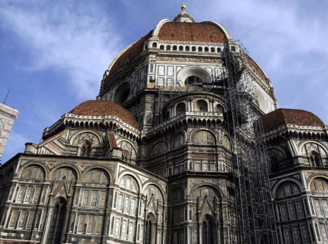 4分 满意这座圣乔瓦尼洗洗礼堂始建于1153年,由建筑师Diotisalvi施工,100多年后,Nicola和Giovanni Pisano又改变了设计方案继续修建,最终于14世纪完工。仔细看发现他的风格是混合式的,拱廊下半部分的石柱是比萨罗曼风格,而象小尖塔似的上半部分,以及洗礼堂直径35公尺的巨大圆顶和绕着圆顶的一个个尖顶则是哥特式的建筑风格。加上四座雕刻精致的大门,是洗礼堂外表予人的强烈印象。洗礼堂周围有耶稣门徒的头部雕像。