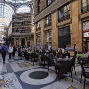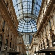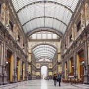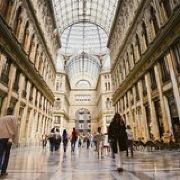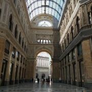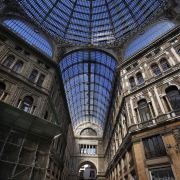 翁贝托一世长廊始建于1887年,56米高的拱形玻璃穹顶在蓝天的映衬下分外美丽。街道呈十字形,地面用精美的马赛克装饰,现在的翁贝托一世长廊已不似往昔的那般繁荣,很多商铺空着,缺少人气。