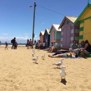 布赖顿滩是墨尔本著名的海边景点,位于墨尔本市中心东南部11公里处,从市中心搭乘火车到达沙滩大概需要30分钟,沙滩上有五颜六色的小屋,游人如织,冲浪、潜水、日光浴,各种活动非常精彩。