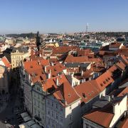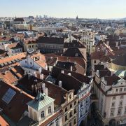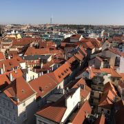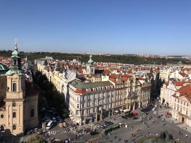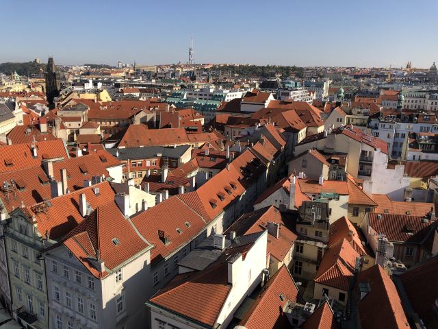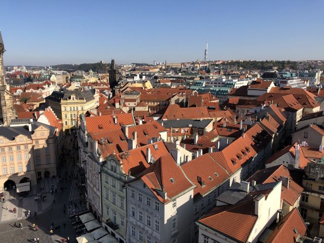 进去以后,找到登顶的售票口(还有一个展览的售票口,别走错了),买票排队去,门票220克朗(人民币67元)。有电梯直接上去,也有步行楼梯。不知道是不是因为上去的时间是下午2点太阳最烈的时候,没有看到想象中的画面,红屋顶好多都是阴影。