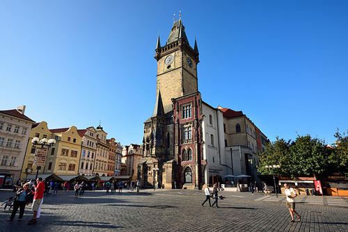 旧市政厅建于1338年,一度作为皇家宫庭使用,15世纪末皇室成员搬入布拉格城堡居住,这里便荒废了数百年,直到1911年改建为文化中心。整座建筑物最大的亮点是外墙那座拥有600年历史的天文钟,每逢中午12点,十二尊耶酥门徒像便会伴随着钟声从钟旁依次现身。一到整点的时候,天文钟下面就聚集了全世界的游客,一睹真容。