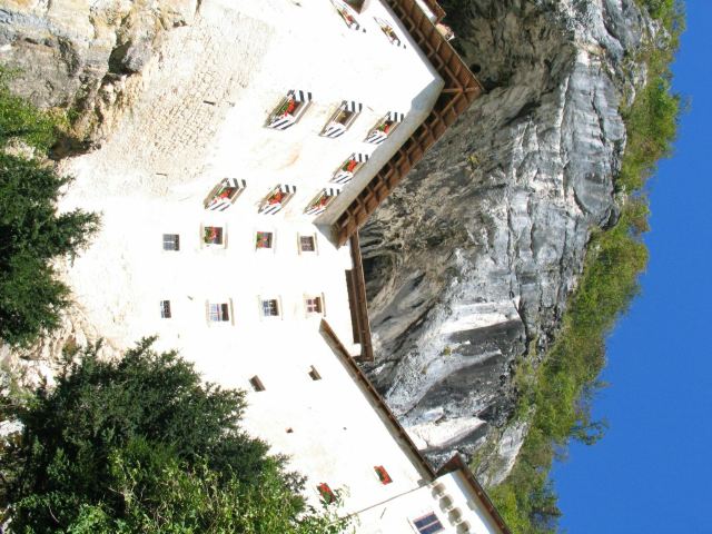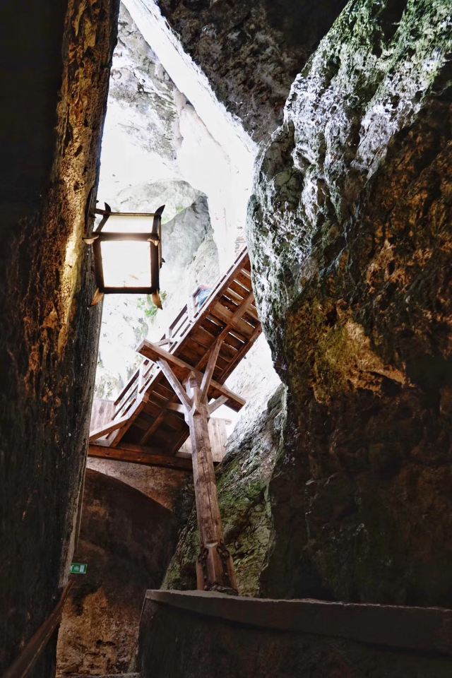 5分 超棒离波斯托伊纳溶洞9公里还有个普利雅玛悬崖城堡Predjama Castle,位于400英尺高的悬崖上。但是以前这片山谷寸草不生,因为这就是一个防御堡垒,没有人希望自己的敌人有树荫遮蔽(此处联想邓西嫩的麦克白先生)。这个城堡辗转了很多家族,最近的是一个意大利家族将此作为打猎的行宫,但最有名的是中世纪时有个斯洛文尼亚罗宾汉,在这里守了一年多,还有直上直下的竖井密道。最后是仆人告密,在图六的厕所丧生于被石弹砸塌的墙下。据说成龙的《龙兄鼠弟》也在这里取过景。斯国的解说词真的写得很有意思,反复强调了两遍,这个城堡阴湿简陋住起来很不舒服,但是,很安全,而在中世纪,安全是最重要的。