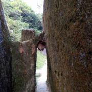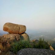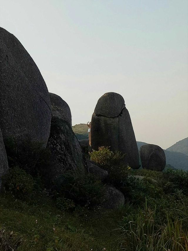 5分 超棒是国家地质公园 , 开车上山 ,有北门和南门两条路线,南左北右。走北门地势平缓,但是路程要远很多(20公里)。而南门较近,却也陡峭曲折,特别提醒选南门的,一定要谨慎,南门的山道与湖南衡山的有得一比,上山的路坡度超过30度,大坡度加180度大转弯就有2处,真的是挺危险的。如果中途停车或者熄火就更惊险!途中就遇到几辆车上不去 停在山道旁的。不过如果自信 老司机随意。到山上月亮山庄处有停车场停好车,一路步行登山,途中不时偶遇猴子。猴子不会主动攻击游人抢夺食物,顽皮却不凶蛮;途中还可发现有小拇指粗的山蚯蚓,藤缠树,树包石……最奇观的是山顶的各种风化花岗岩石蛋和石柱,任你与实物相比较发挥想像力去欣赏。登顶还可俯瞰远处的风车和在建的电缆工程。山顶是草甸,坡陡也比较滑,还没有一棵可以遮阴的树木,需要做好防晒。想玩水看瀑布你的可以从月亮山庄往下走或者登顶后取车,开到南门停车场往上走。