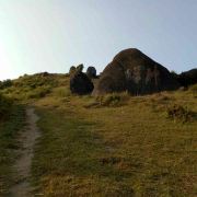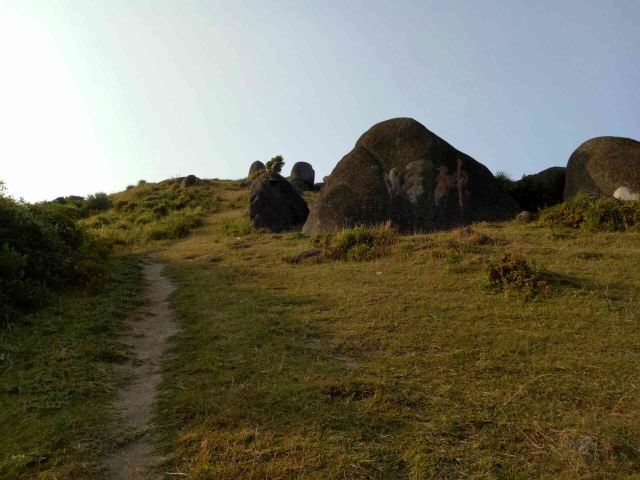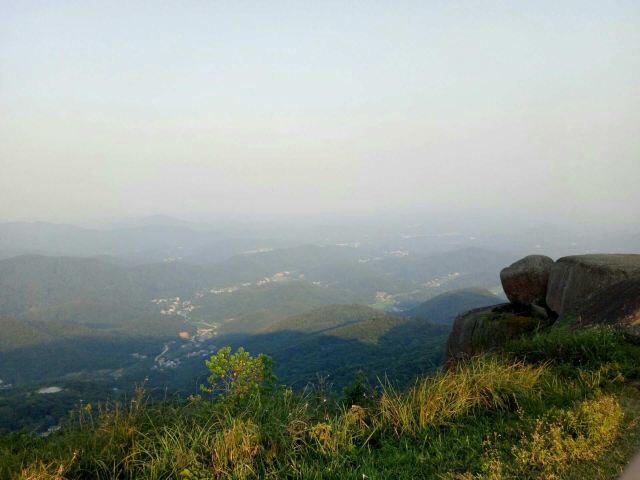 3.走小径可以锻炼身体,毕竟蛮长的。山顶有奇石,也有草甸。山顶不是很大,我比较喜欢草甸。山顶的风很凉爽啊,听公园的叔叔说天晴的时候可以看到海。