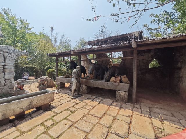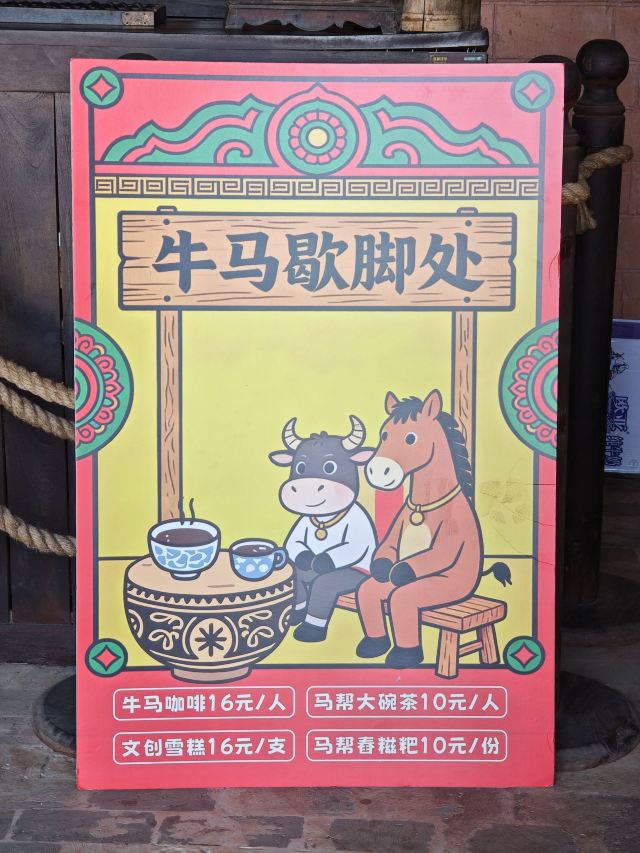 坐着索道一路攀爬,来到山巅的忠义驿站。马帮晓行夜宿,古道沿途驿站林立,南来北往的马帮在此打尖住店,借着灶火给饥肠辘辘的人马准备晚餐,饭桌上大快朵颐,杯盏间谈天说地,好不惬意。
