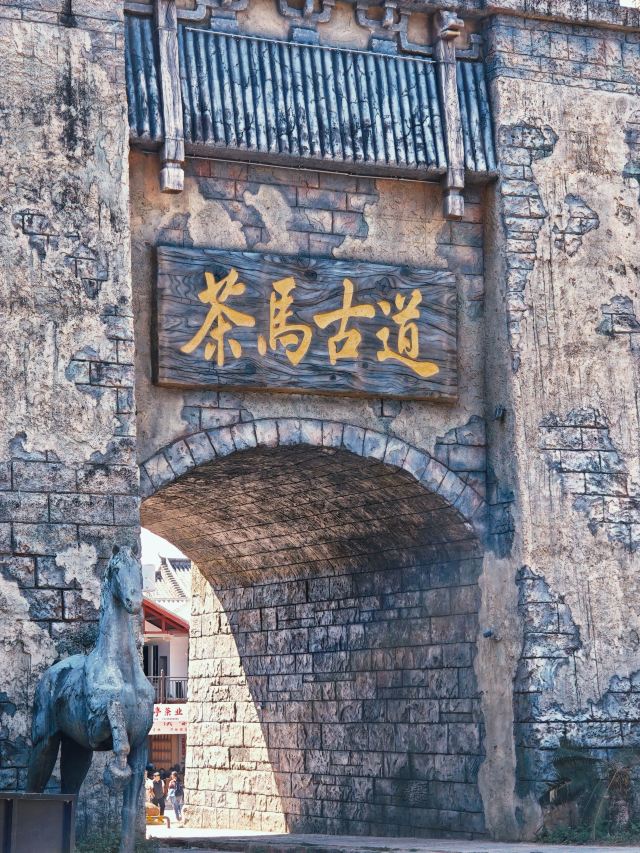 沿着茶马古城旅游小镇正关天街进入景区,首先映入眼帘的是庄严耸立的思茅城关,水光潋滟的饮马湖上是跋涉在古道之路上的马帮群像——“传茶者”,为我们展现出马帮在陡峭山道中艰难跋涉的画面。正是一代代马帮人凭借刚毅、勇敢和智慧,用血汗浇灌出一条条通往东西南北的贸易之路,从这里,开启探秘之旅。