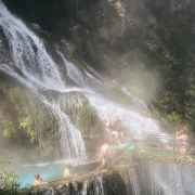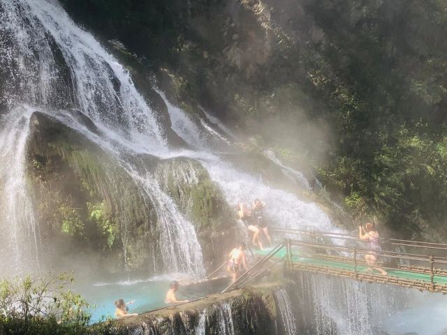 5分 超棒来到这里可以在温泉中看青山环绕,在源源不断的瀑布水下畅游,沐浴其中使身体和心灵都得到了放松。螺髻九十九里位于四川省凉山州普格县,是世界最大温泉瀑布,也是世界唯一的温泉群岛、挂壁温泉。这里一里一个景,九里一个奇观,共九十九景,因此 得名螺髻九十九里。温泉距离西昌市区1小时多车程,或前一晚住普格县(半小时左右车程)便于一早进景区停车方便、有秩序停好车后需乘坐观光车进景区。
